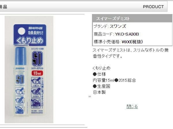 6. スワンズ:スイマーズデミスト【SWANS スイミングゴーグル くもり止め】
