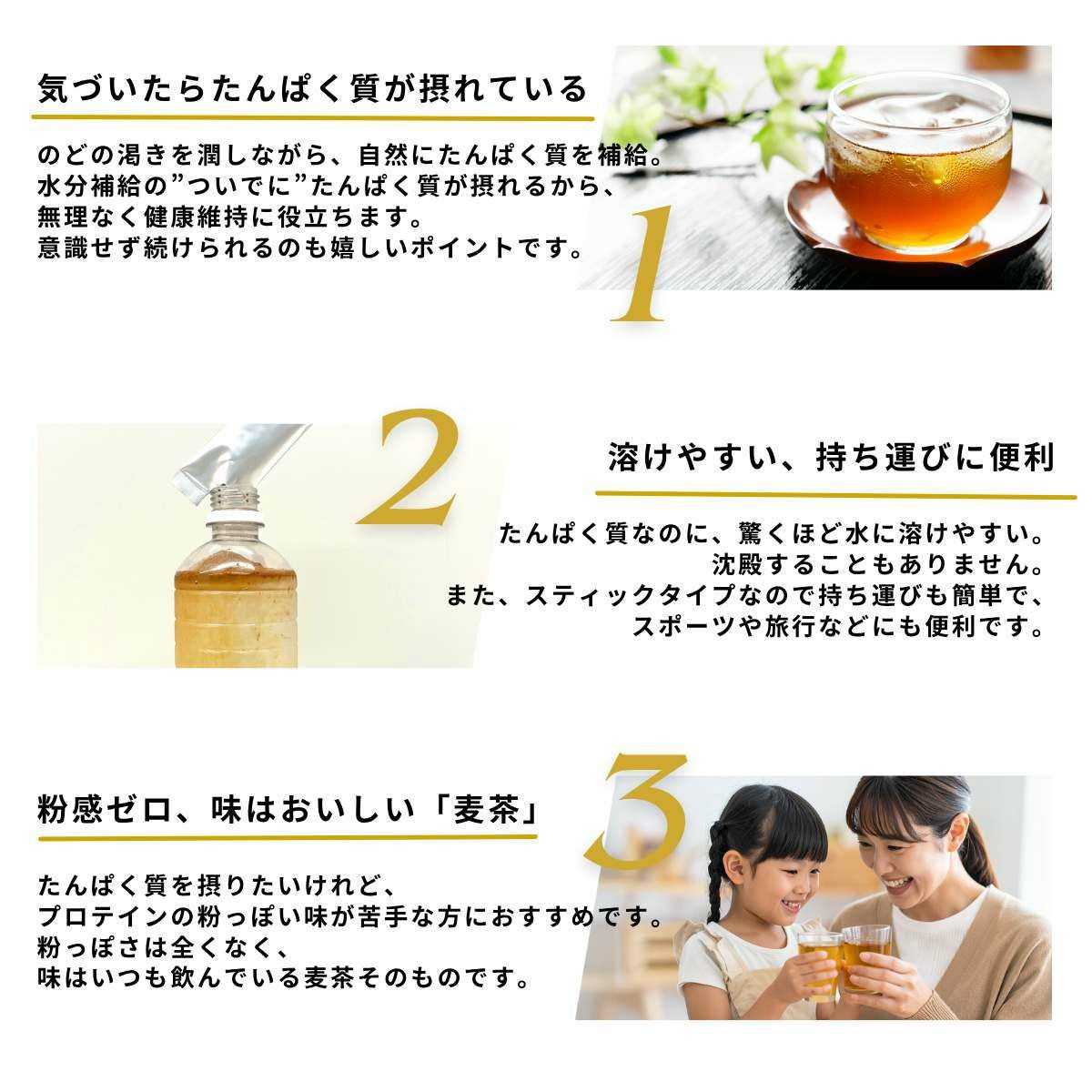 他の画像を見る アースカラー EARTHCOLOR 高たんぱく麦茶 麦茶プラス 30包入り 日本製 MADE IN JAPAN 麦茶 世界初 ノンカフェイン タンパク質 部活 スポーツ ゴルフ 熱中症対策 暑さ対策 夏 オールシーズン 飲みやすい 溶けやすい 健康 美容 水分補給 PL001 メーカー希望小売価格 ¥ 3,888 販売価格 ¥ 3,888 税込 在庫を見る お気に入りに登録する