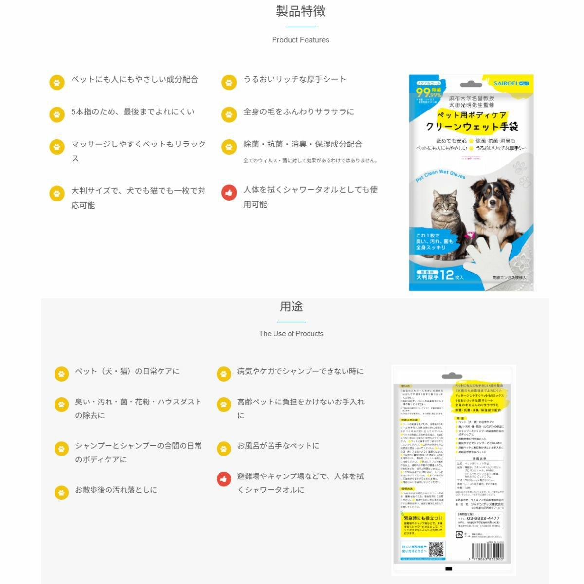 他の画像を見る 【29%OFF】 【まとめ買いでお得!】サイロフィ ペット用ウェット手袋 1袋12枚入り 10袋セット アウトドア 防災 震災 ペット用品 犬 猫 ワンちゃん ネコちゃん ウェットシート 掃除 ボディケア 散歩 汚れ落とし 防災グッズ 震災グッズ 防災ペット用品 アウトレット セール メーカー希望小売価格 ¥ 14,080 販売価格 ¥ 9,989 税込 在庫を見る お気に入りに登録する