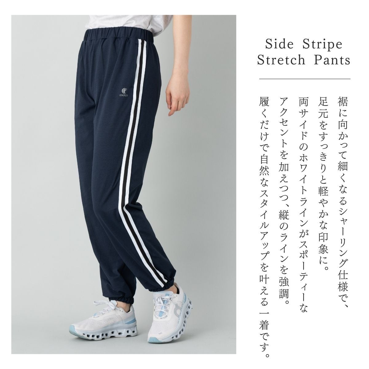 他の画像を見る 【19%OFF】スポーツ フィットネス パンツ インフィット カチオン染め サイド2本ラインパンツ レディース INFIT メーカー希望小売価格 ¥ 4,950 販売価格 ¥ 3,990 税込 在庫を見る お気に入りに登録する