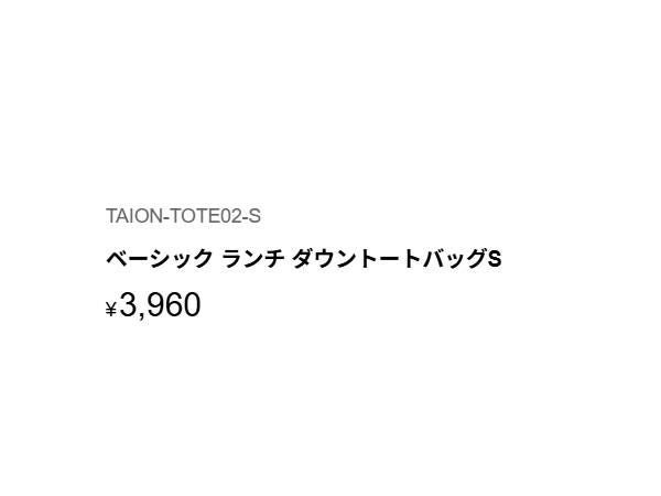 他の画像を見る 【23%OFF】 タイオン ベーシック ランチ ダウントートバッグS TAION LUNCH DOWN TOTE BAG-S メーカー希望小売価格 ¥ 3,960 販売価格 ¥ 3,049 税込 在庫を見る お気に入りに登録する