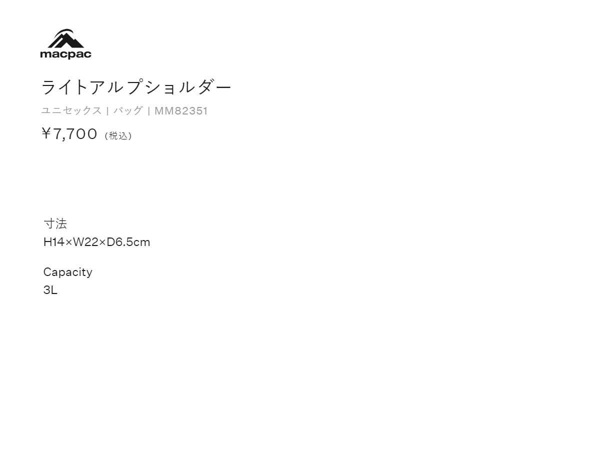 他の画像を見る 【20%OFF】カジュアル バッグ マックパック macpac LiteAlp Shoulder ライトアルプショルダー 3L メンズ レディース ユニセックス ブラック 黒 カジュアル バッグ ショルダー 防水 MM82351 K メーカー希望小売価格 ¥ 7,700 販売価格 ¥ 6,160 税込 在庫を見る お気に入りに登録する