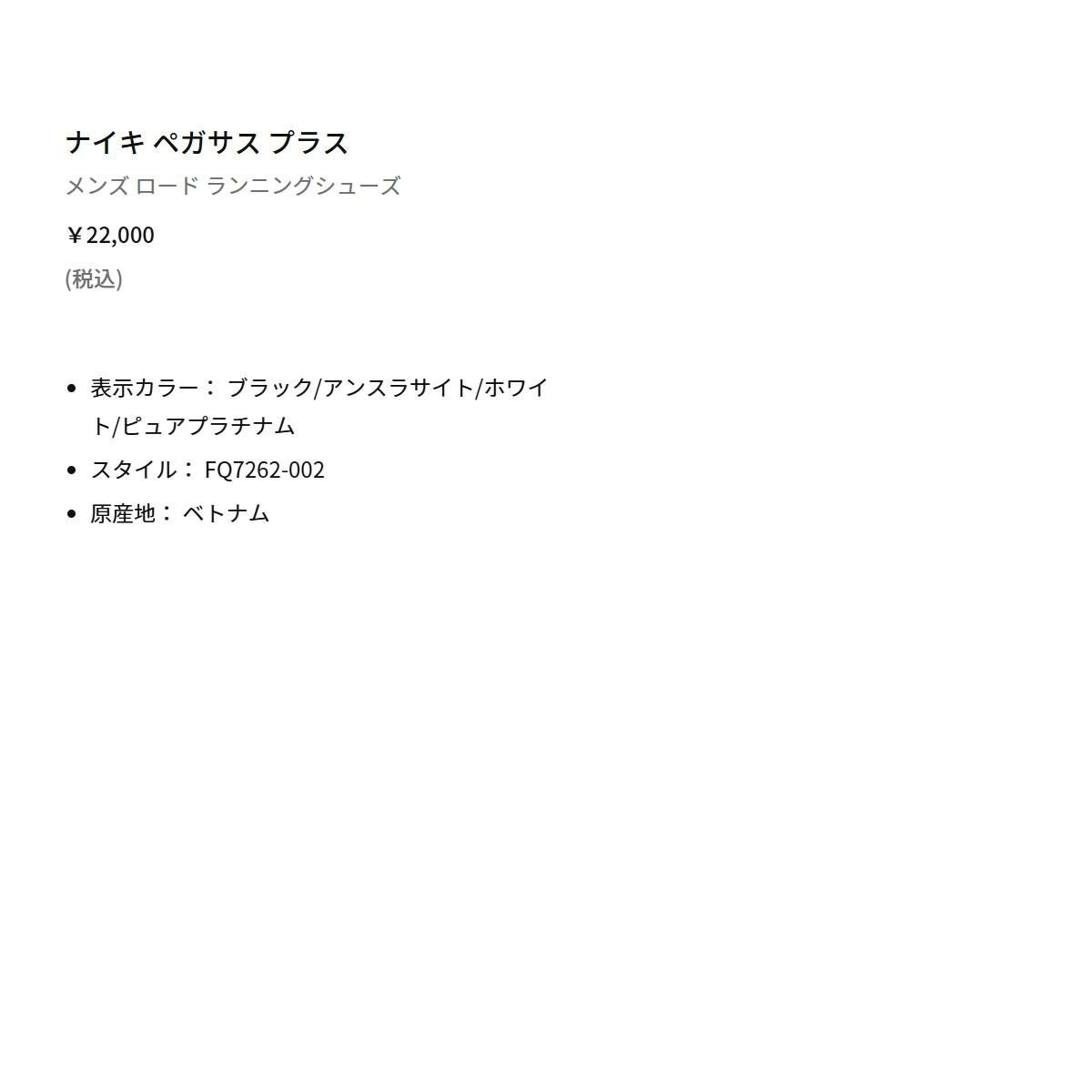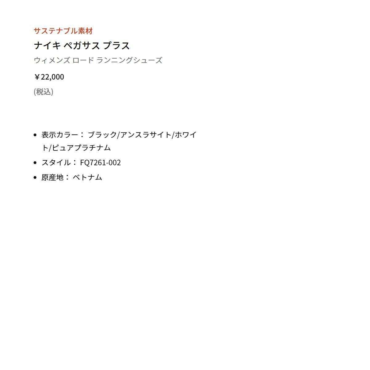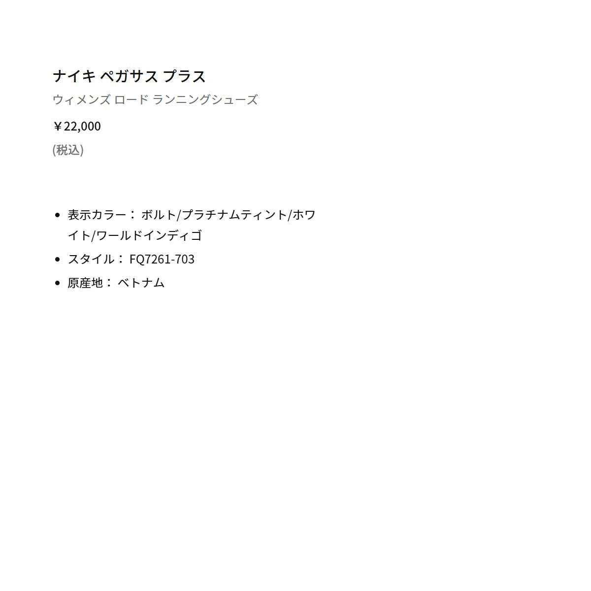 他の画像を見る 【20%OFF】スポーツ ランニングシューズ ランシュー ナイキ ペガサス プラス レディース NIKE PEGASUS PLUS メーカー希望小売価格 ¥ 22,000 販売価格 ¥ 17,600 税込 在庫を見る お気に入りに登録する