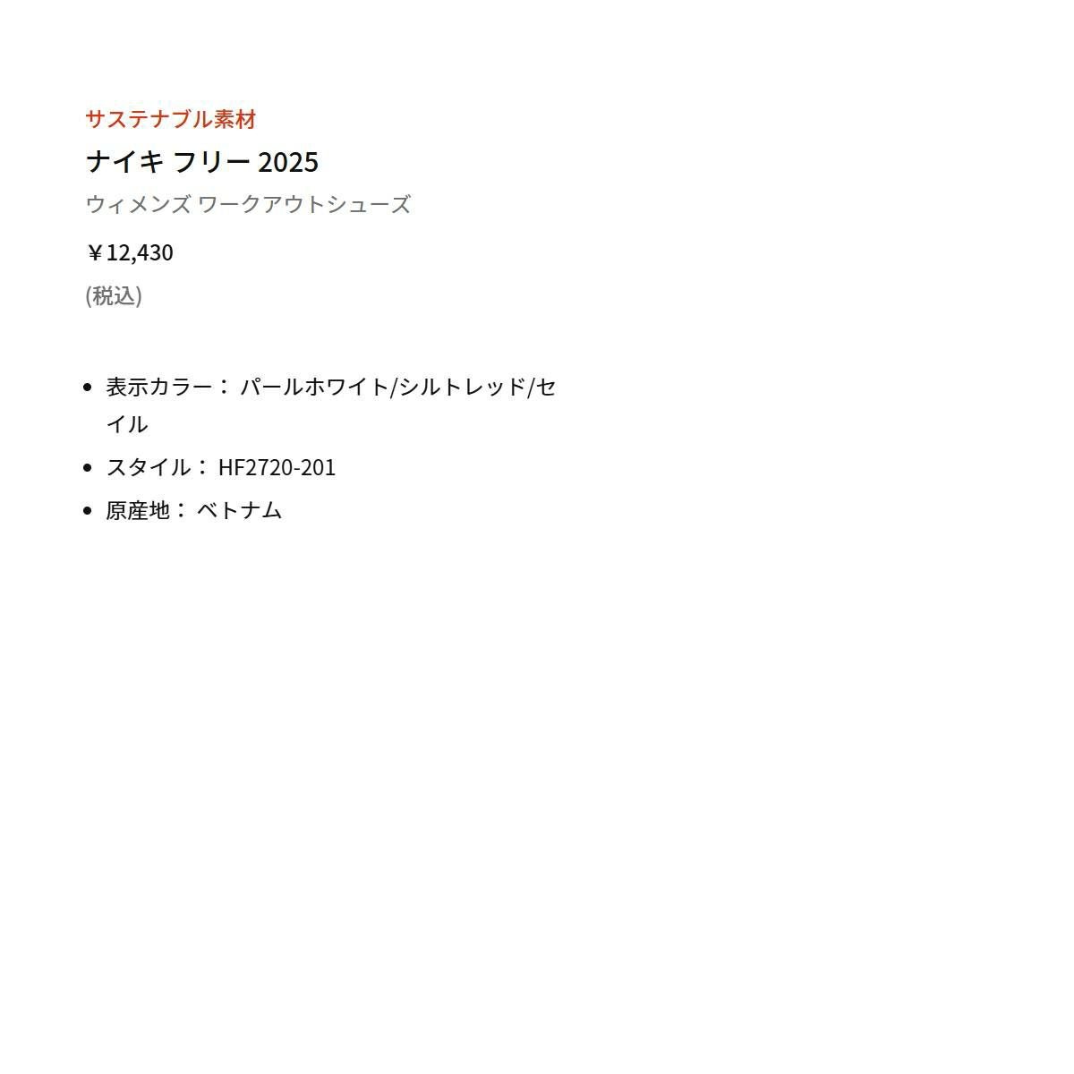 他の画像を見る 【10%OFF】スポーツ ランニングシューズ ランシュー ナイキ レディース NIKE FREE 2025 フリー 2025 メーカー希望小売価格 ¥ 12,430 販売価格 ¥ 11,187 税込 在庫を見る お気に入りに登録する