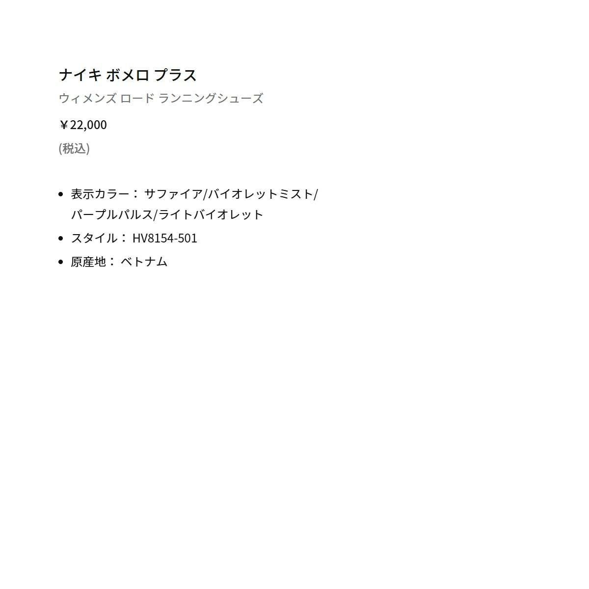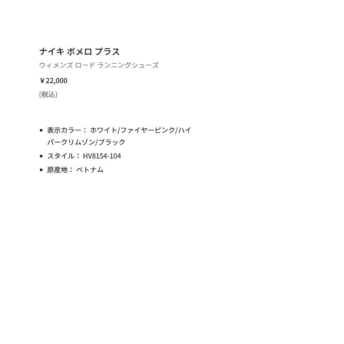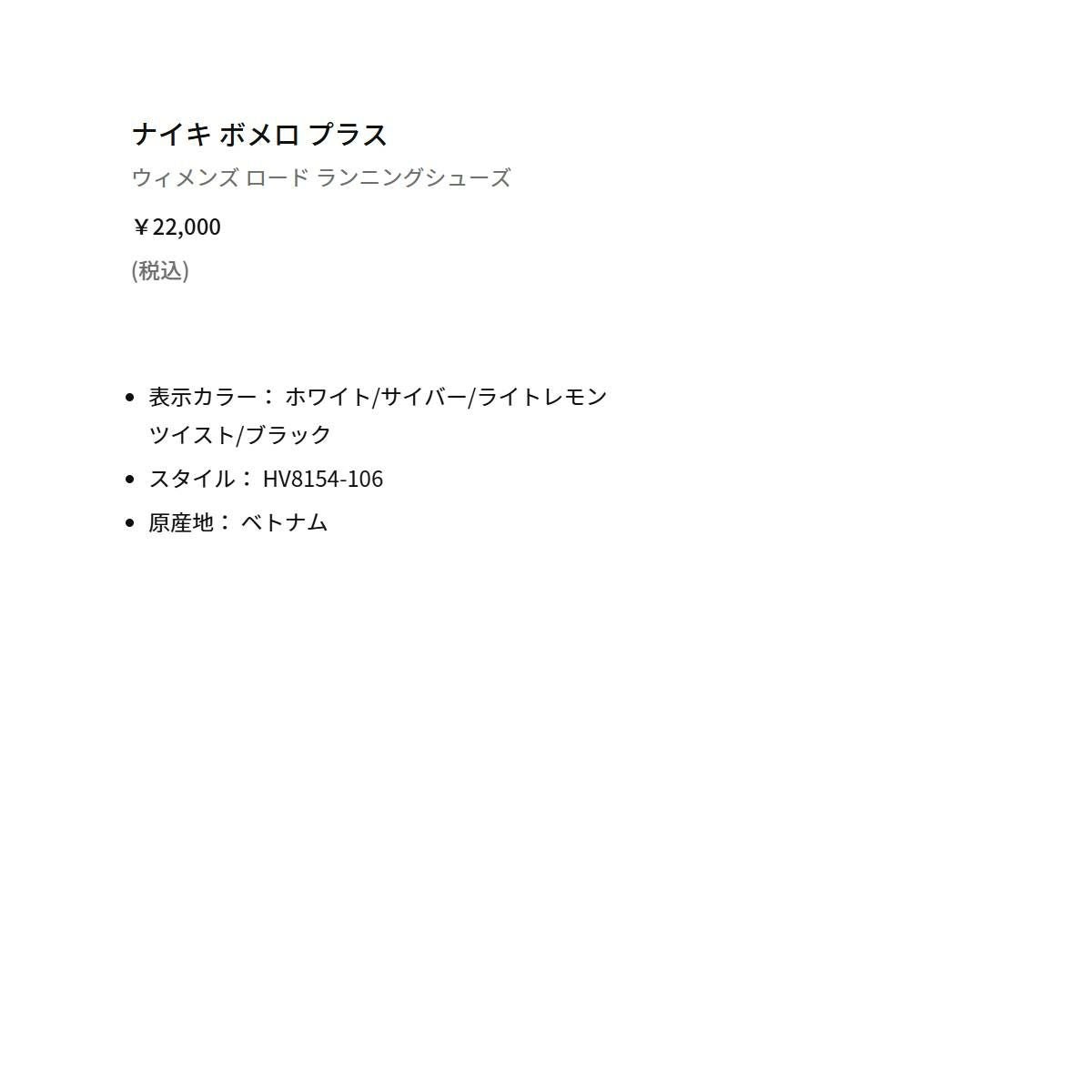 他の画像を見る スポーツ ランニングシューズ ランシュー ナイキ ボメロ プラス NIKE HV8150802 メーカー希望小売価格 ¥ 22,000 販売価格 ¥ 22,000 税込 在庫を見る お気に入りに登録する