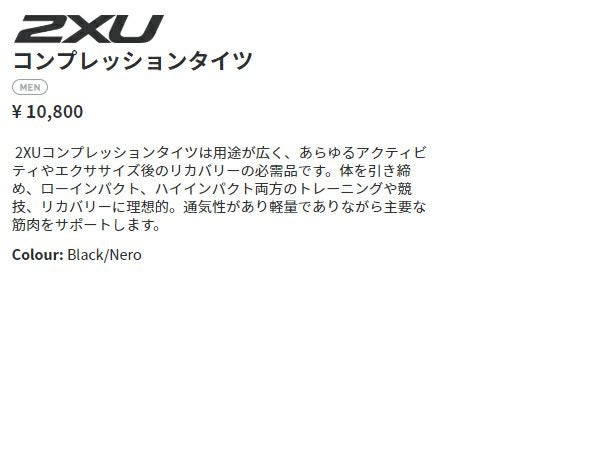 他の画像を見る スポーツ インナー タイツ ツータイムズユー MCSランコンプレッションタイツ メンズ 2XU メーカー希望小売価格 ¥ 16,500 販売価格 ¥ 16,500 税込 在庫を見る お気に入りに登録する