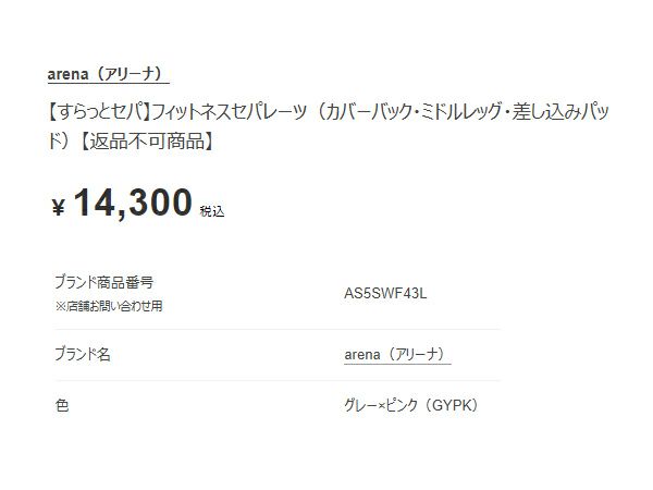 他の画像を見る 【39%OFF】 アリーナ すらっとセパ フィットネスセパレーツ(カバーバック ミドルレッグ 差し込みパッド) レディース arena アウトレット セール メーカー希望小売価格 ¥ 16,500 販売価格 ¥ 9,990 税込 在庫を見る お気に入りに登録する