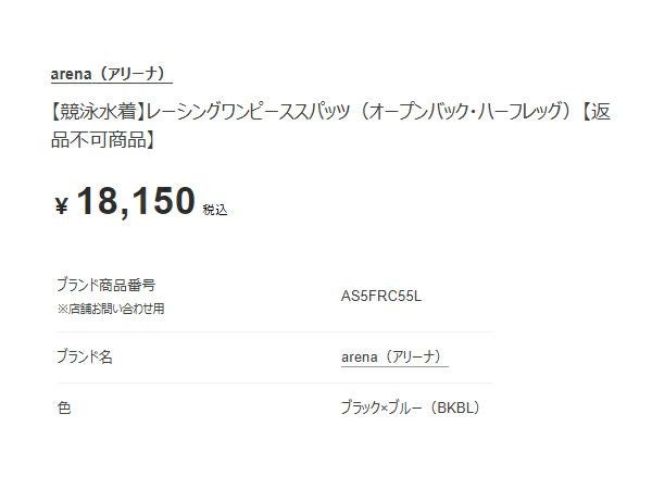 他の画像を見る 【10%OFF】水泳 スイム 競泳 水着 アリーナ WA承認 レーシングワンピース(オープンバック) レディース arena Racing one-piece (Openback) メーカー希望小売価格 ¥ 12,320 販売価格 ¥ 11,088 税込 在庫を見る お気に入りに登録する