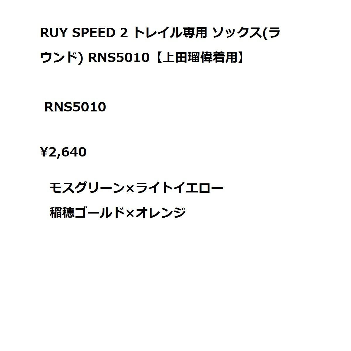 他の画像を見る スポーツ 靴下 ソックス R×L アールエル RUY SPEED 2 トレイル専用 ソックス(ラウンド) RNS5010【上田瑠偉着用】 スポーツ 靴下 ソックス RNS5010 メーカー希望小売価格 ¥ 2,640 販売価格 ¥ 2,640 税込 在庫を見る お気に入りに登録する