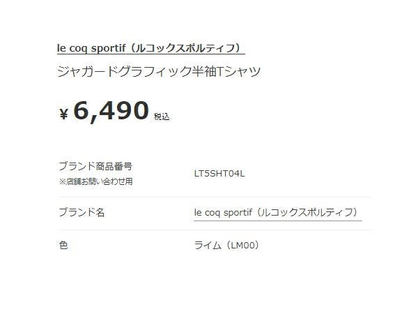 他の画像を見る 【23%OFF】スポーツ フィットネス ウェア ルコック le coq sportif ジャガードグラフィック半袖Tシャツ レディース 春 夏 ホワイト 白 スポーツ フィットネス 半袖 Tシャツ LT5SHT04L-WH00 メーカー希望小売価格 ¥ 6,490 販売価格 ¥ 4,990 税込 在庫を見る お気に入りに登録する