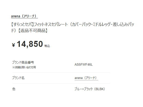 他の画像を見る 【33%OFF】 アリーナ すらっとセパ フィットネスセパレート(カバーバック ミドルレッグ 差し込みパッド) レディース arena アウトレット セール メーカー希望小売価格 ¥ 14,850 販売価格 ¥ 9,989 税込 在庫を見る お気に入りに登録する