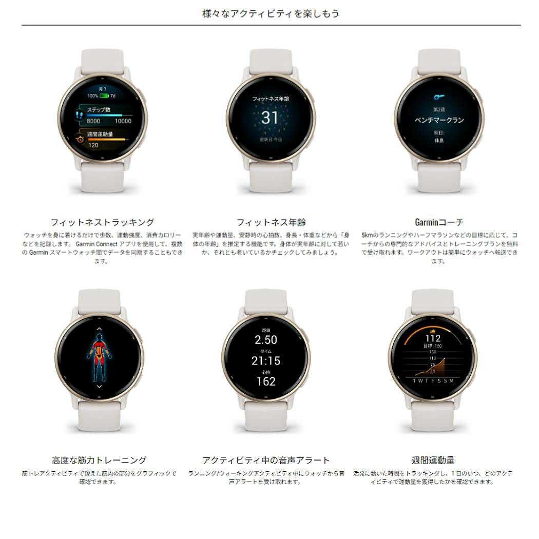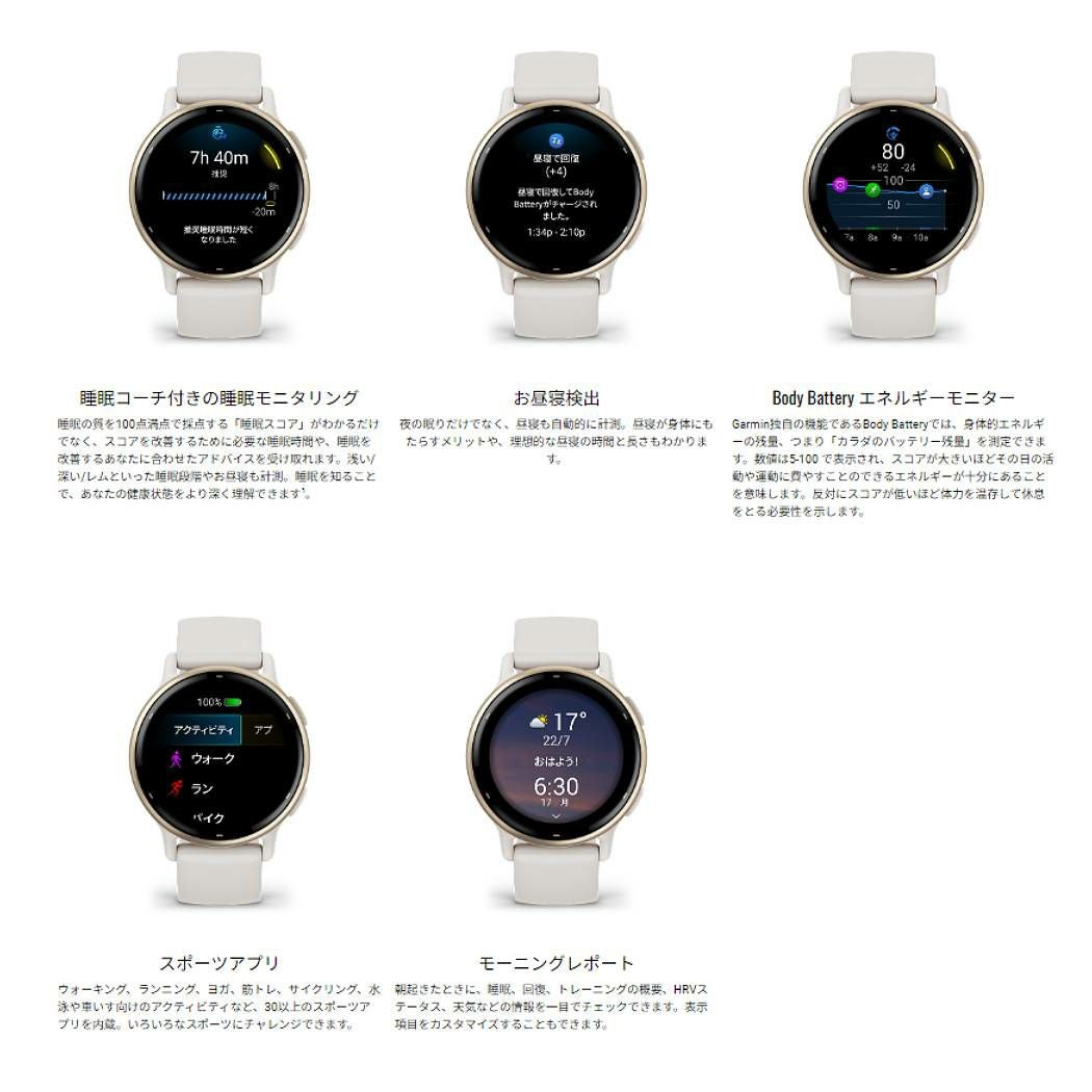 他の画像を見る スポーツ ランニングウォッチ 腕時計 ガーミン GARMIN vivoactive 5 ヴィヴォアクティブ フィットネスGPSウォッチ ブラック ホワイト ネイビー ラベンダー スポーツ トレーニング スマートウォッチ 腕時計 010-02862-40.41.42.43 メーカー希望小売価格 ¥ 29,800 販売価格 ¥ 29,800 税込 在庫を見る お気に入りに登録する