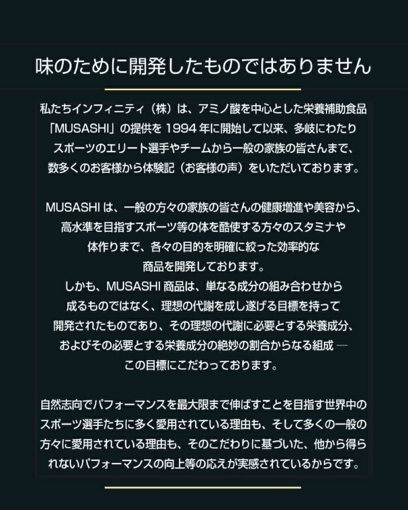 他の画像を見る スポーツ トレーニング アミノ酸 ムサシ MUSASHI IMMUNITY イミュニティ 45本入り 1本(3.6g) アミノ酸 サプリ サプリメント 体調 保護 コンディション メンテナンス 人口甘味料不使用 日本製 スポーツ トレーニング 身体の保護システムをサポート プロテイン・サプリ2点以上まとめ買い割引対象商品 メーカー希望小売価格 ¥ 6,372 販売価格 ¥ 6,372 税込 在庫を見る お気に入りに登録する