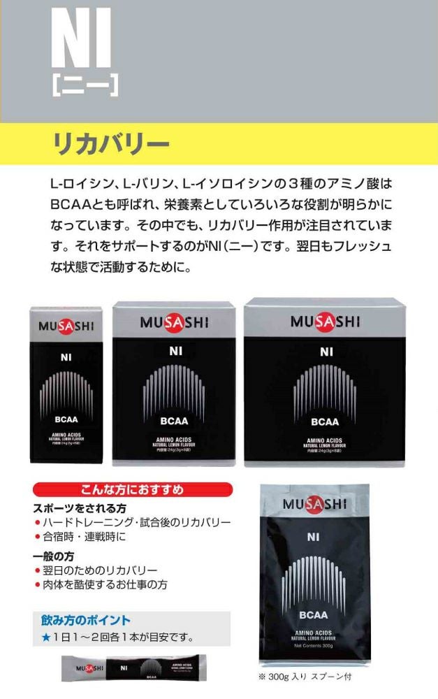 他の画像を見る スポーツ トレーニング アミノ酸 ムサシ MUSASHI NI ニー 8本入り 1本(3.0g) アミノ酸 サプリ サプリメントリカバリー コンディション BCAA 吸収が早い 人口甘味料不使用 日本製 スポーツ トレーニング アミノ酸 筋肉 疲労 リカバリー 筋トレ プロテイン・サプリ2点以上まとめ買い割引対象商品 メーカー希望小売価格 ¥ 1,642 販売価格 ¥ 1,642 税込 在庫を見る お気に入りに登録する